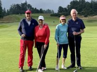 The rain that was forecast gladly did not materialise as the group began play on the Queen’s Course. The beautiful layout is quite short by modern standards, but many experts believe this to be the best course under 6000 yards in the British Isles. Scoring was proving tricky, and it wasn’t until mid-way through the field when the Goodwood duo of John & Alison Moss returned that the magic “40” mark was broken, after they signed for a fabulous 42pts.
