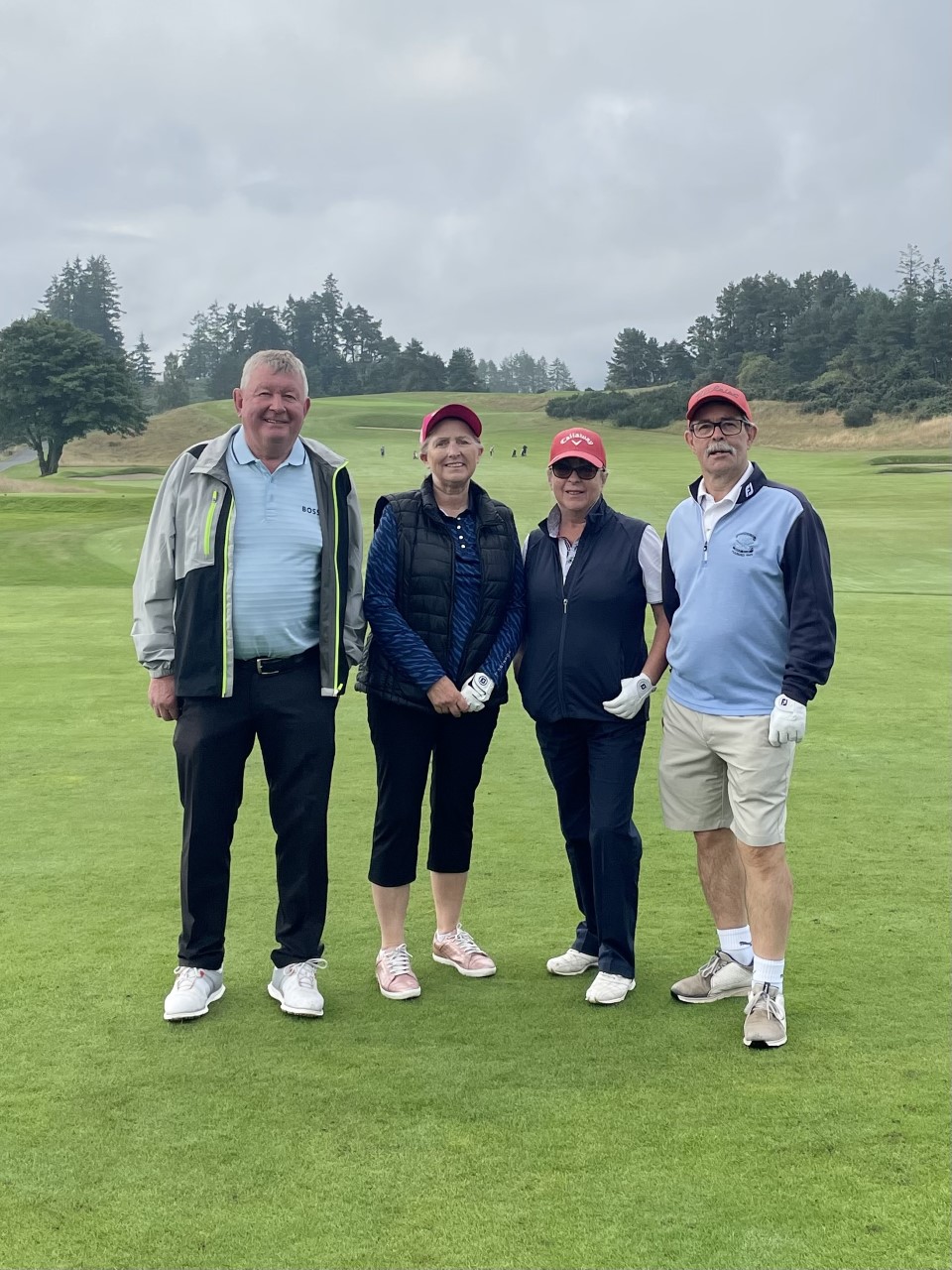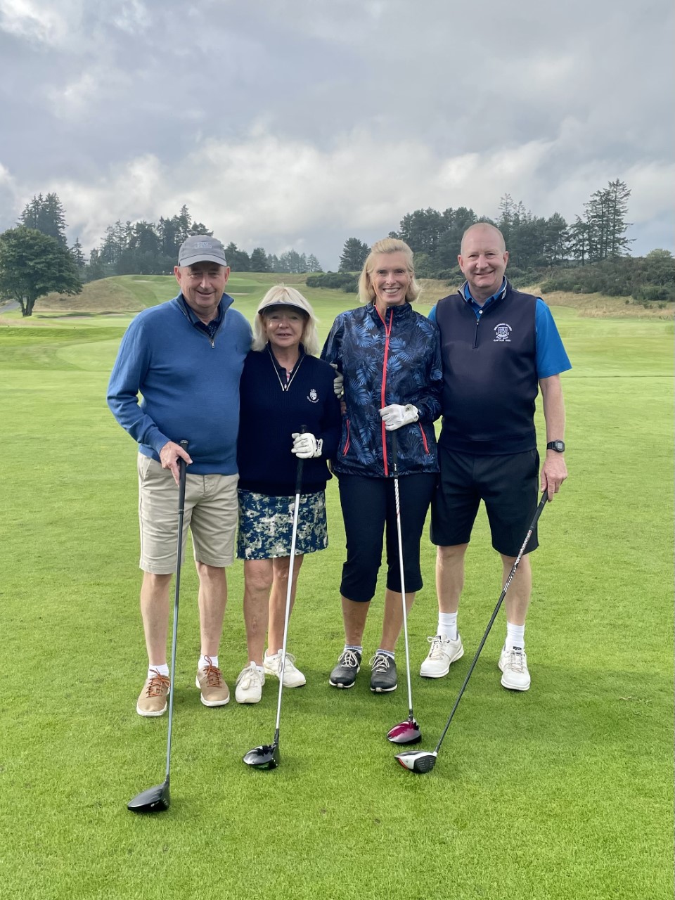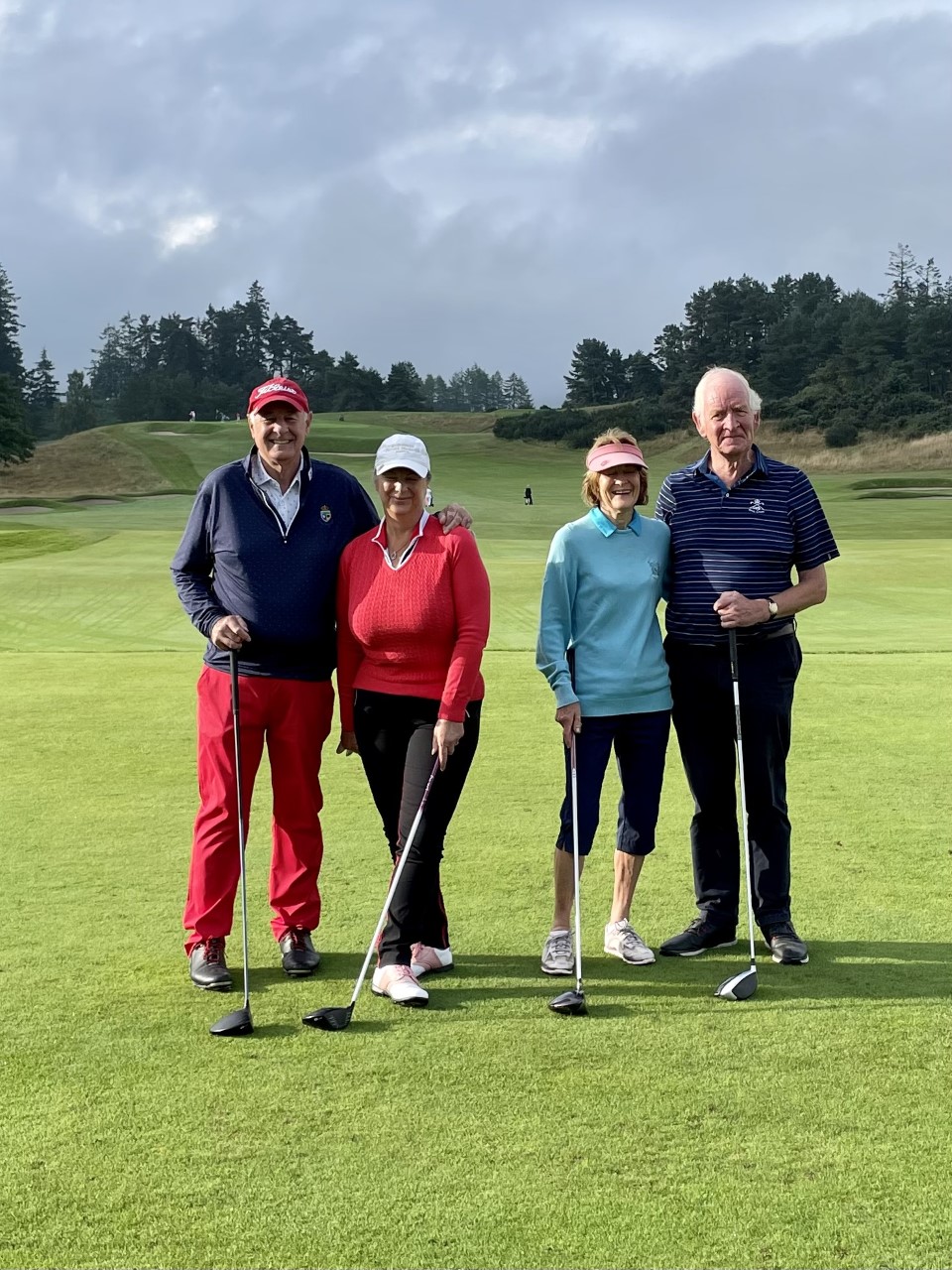 The rain that was forecast gladly did not materialise as the group began play on the Queen’s Course. The beautiful layout is quite short by modern standards, but many experts believe this to be the best course under 6000 yards in the British Isles. Scoring was proving tricky, and it wasn’t until mid-way through the field when the Goodwood duo of John & Alison Moss returned that the magic “40” mark was broken, after they signed for a fabulous 42pts.