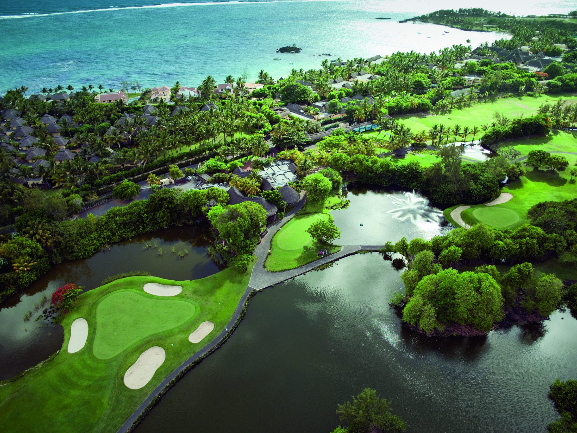 With 2 km of dazzling white-sand beach, chic thatched rooms, vibrant bars and restaurants, and Mauritius’ only two championship courses—the Legend and the Links—right on the doorstep, it delivers luxury, fun and world-class golf in one unforgettable tropical setting.