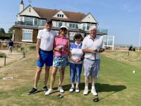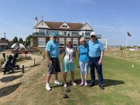 The bravest battled on, consuming water like a leaking ship as the battle now become survival rather than the wonderful test of the Hunstanton links. Phil Luke returned, with his partner Mandy having retired only after a few holes, with a brilliant 37pts. His well earned first pint of lager didn’t touch the sides! Bryan & Pearl Powell one of only 2 couples to walk and complete their rounds, signed off with a wonderful 37pts. Willie & Helen Rae then matched this score that would turn out to be “the best of the day” in the very demanding conditions.