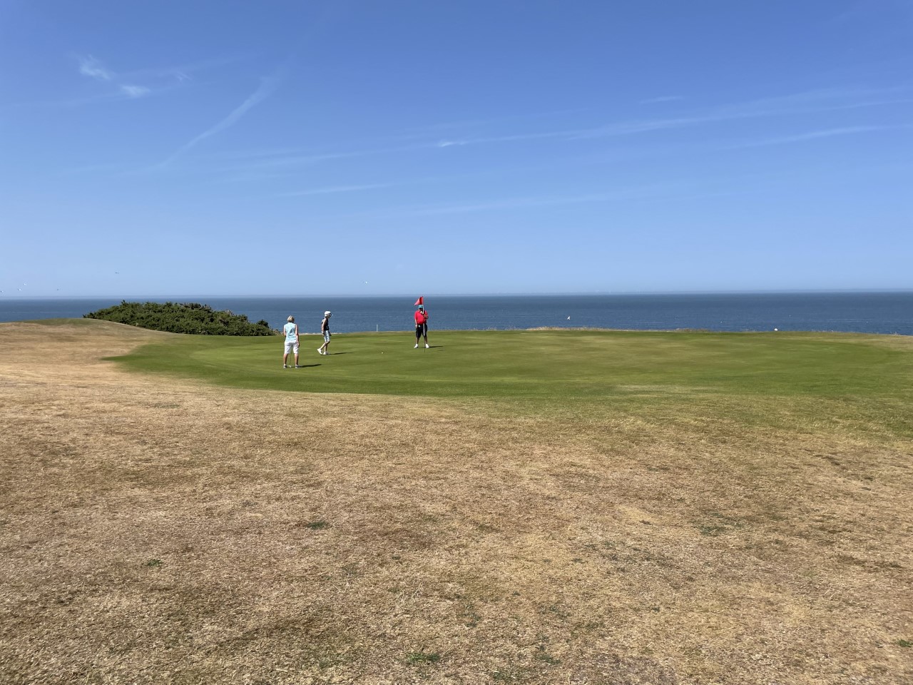 The temperature was hot even as the first group got underway but thankfully the breeze off the North Sea was cooling and allowed for a comfortable round. With the fairways baked hard, players could take advantage of the great distances gained from the tee and reduce the course to a much shorter distance than normal. This became evident as the players returned back to the clubhouse and many were signing for scores in the 40’s.