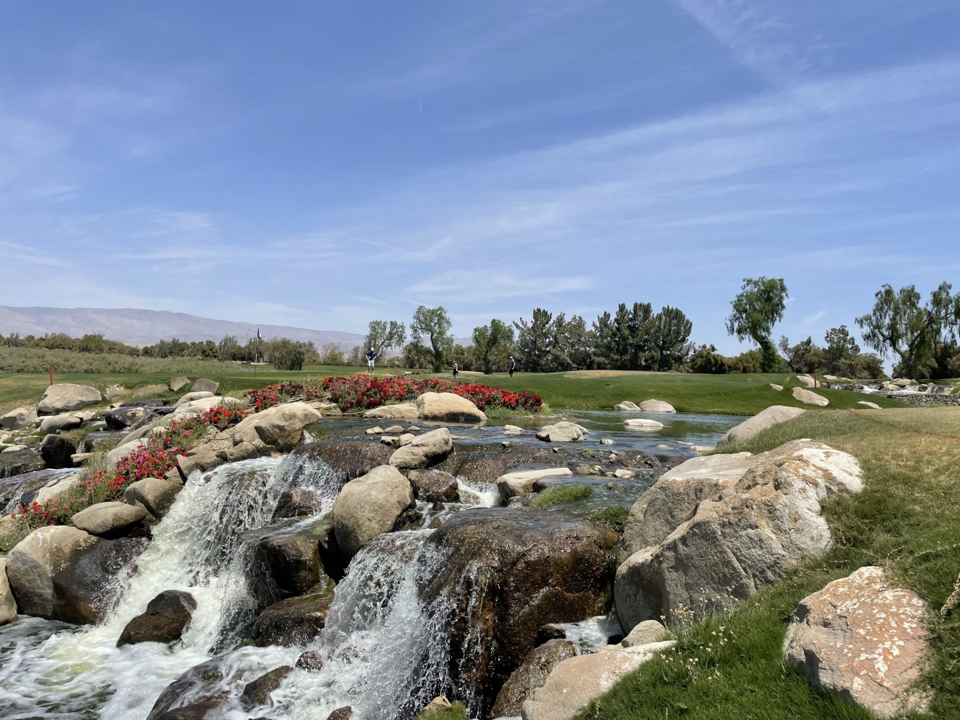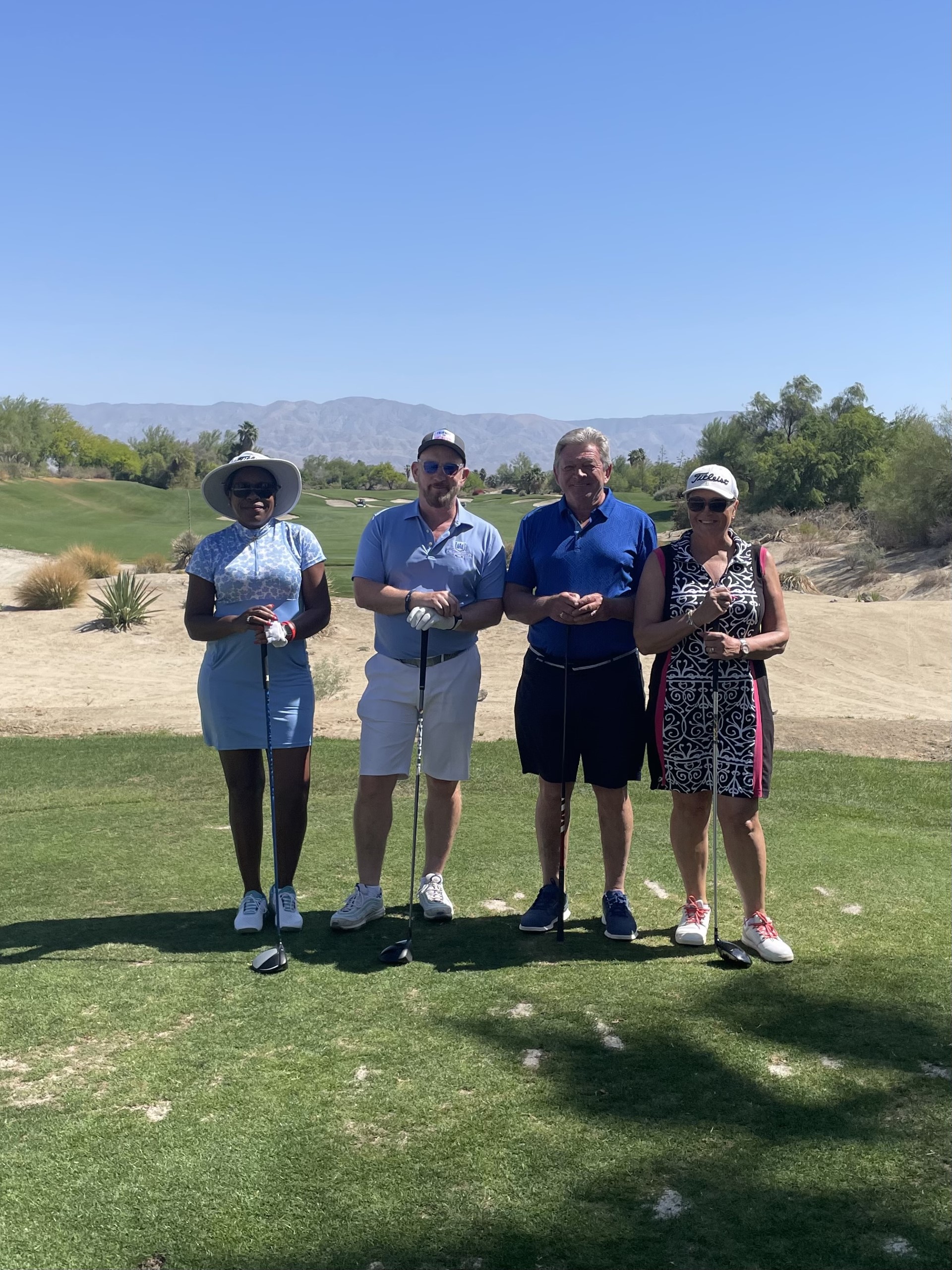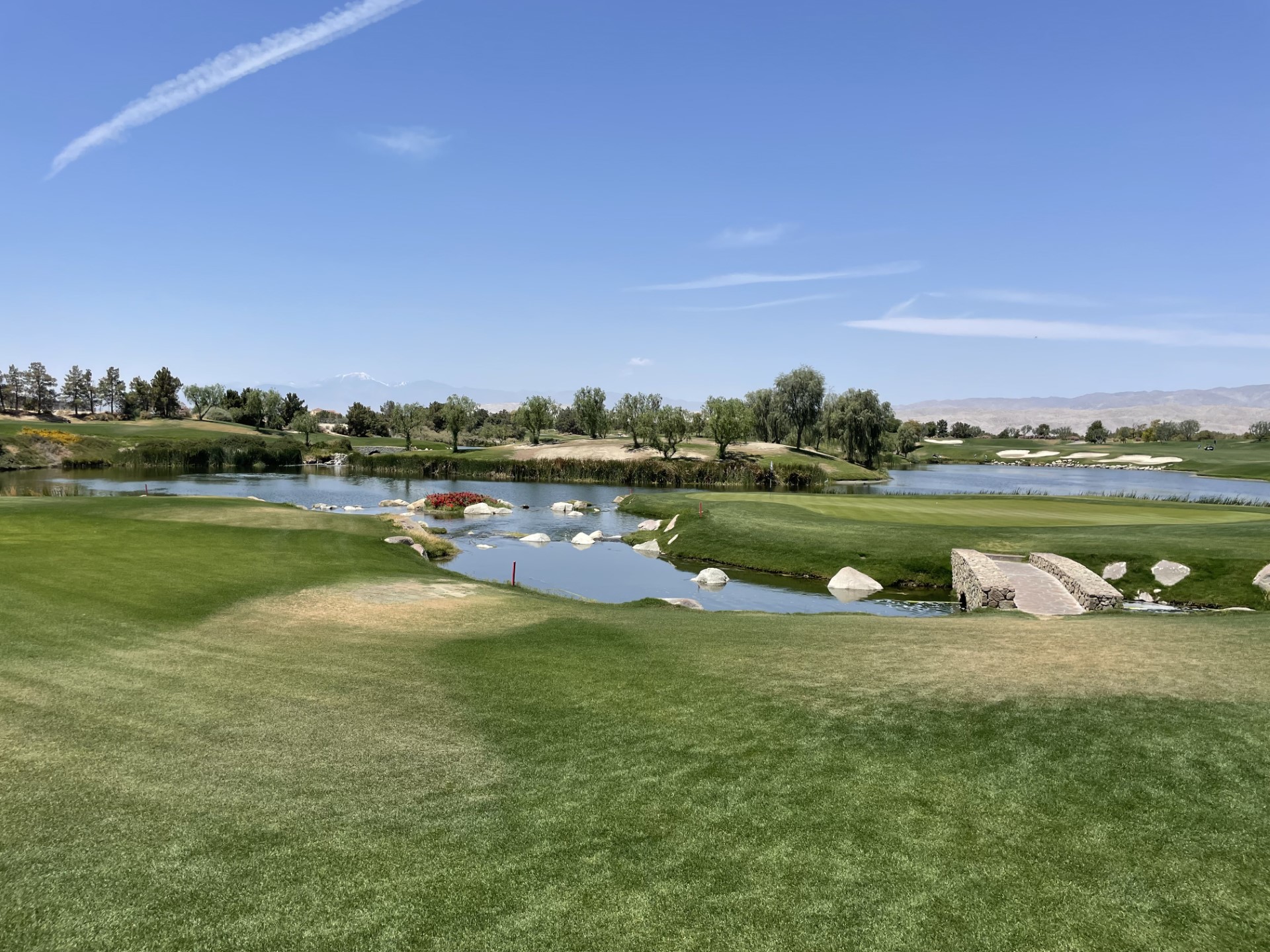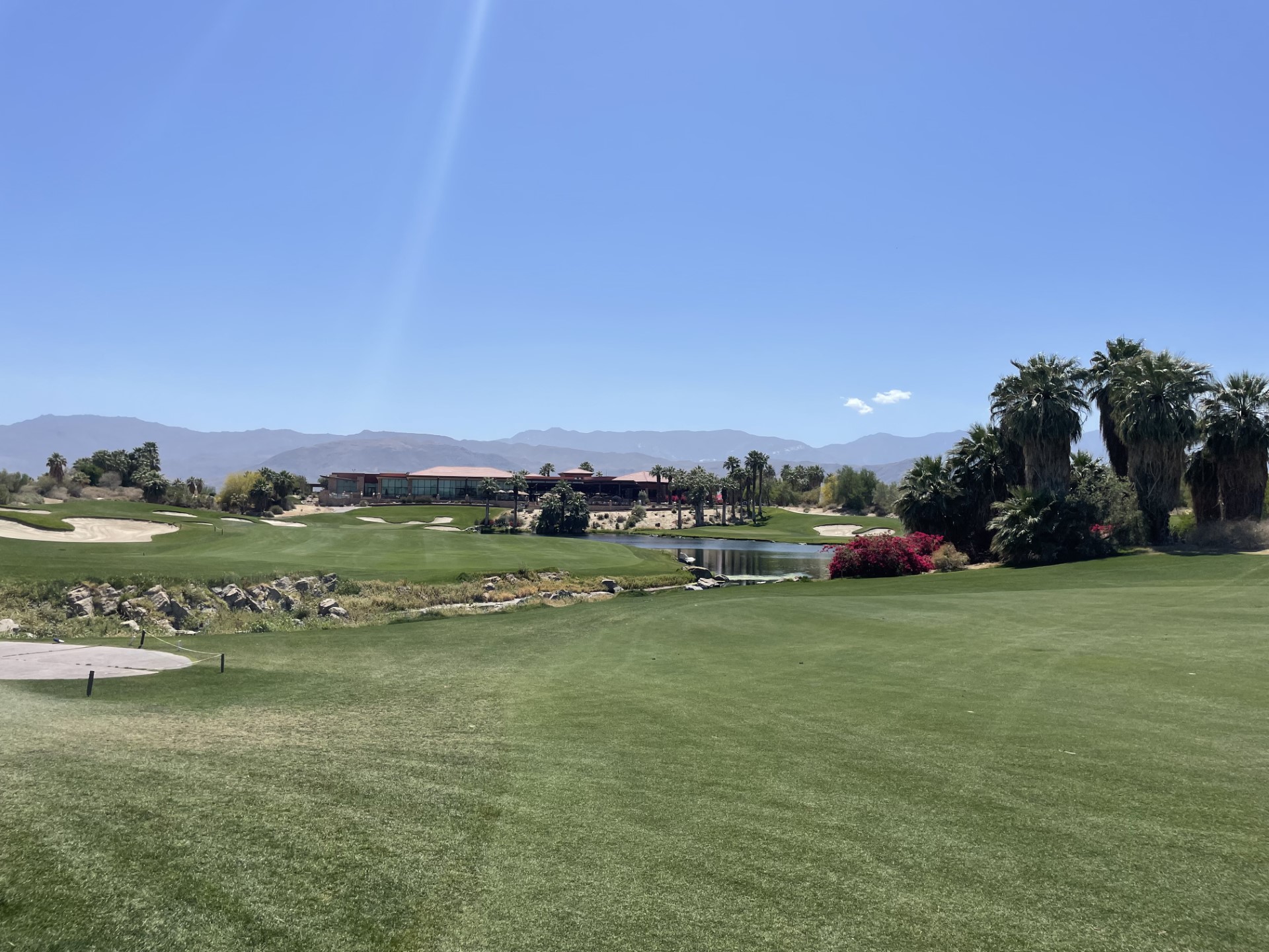 The newest course at PGA WEST and the only Greg Norman-designed golf course in the Coachella Valley was the group’s opening test. Sporting only 68 acres of lush manicured turf, 102 white crushed marble bunkers and shark blue water coming into play on 9 holes, the course offers a truly “Outback” experience! After warming up their games on the immaculate practice facilities, the group set off with clear blue skies and the temperature touching the 90’s.