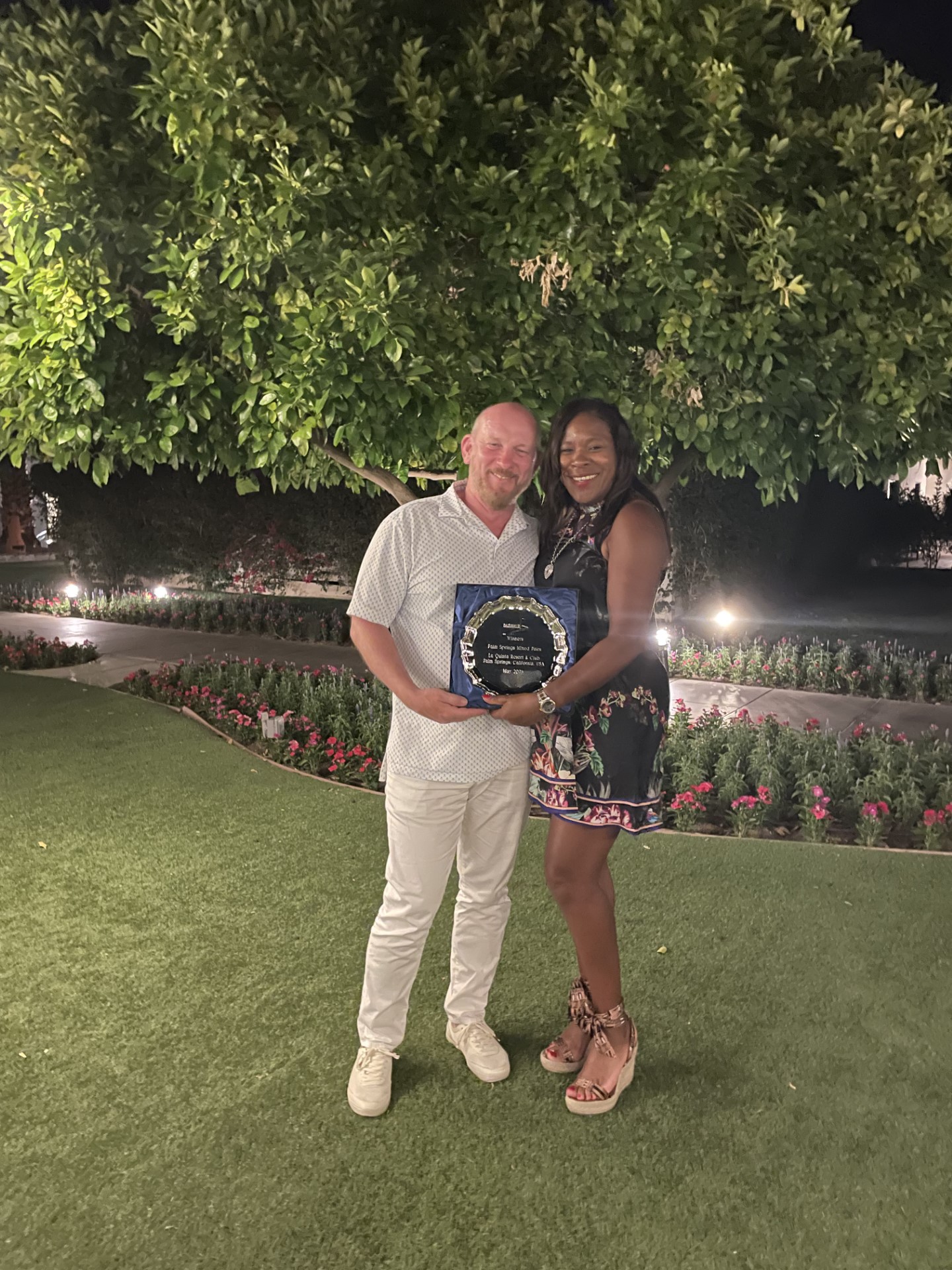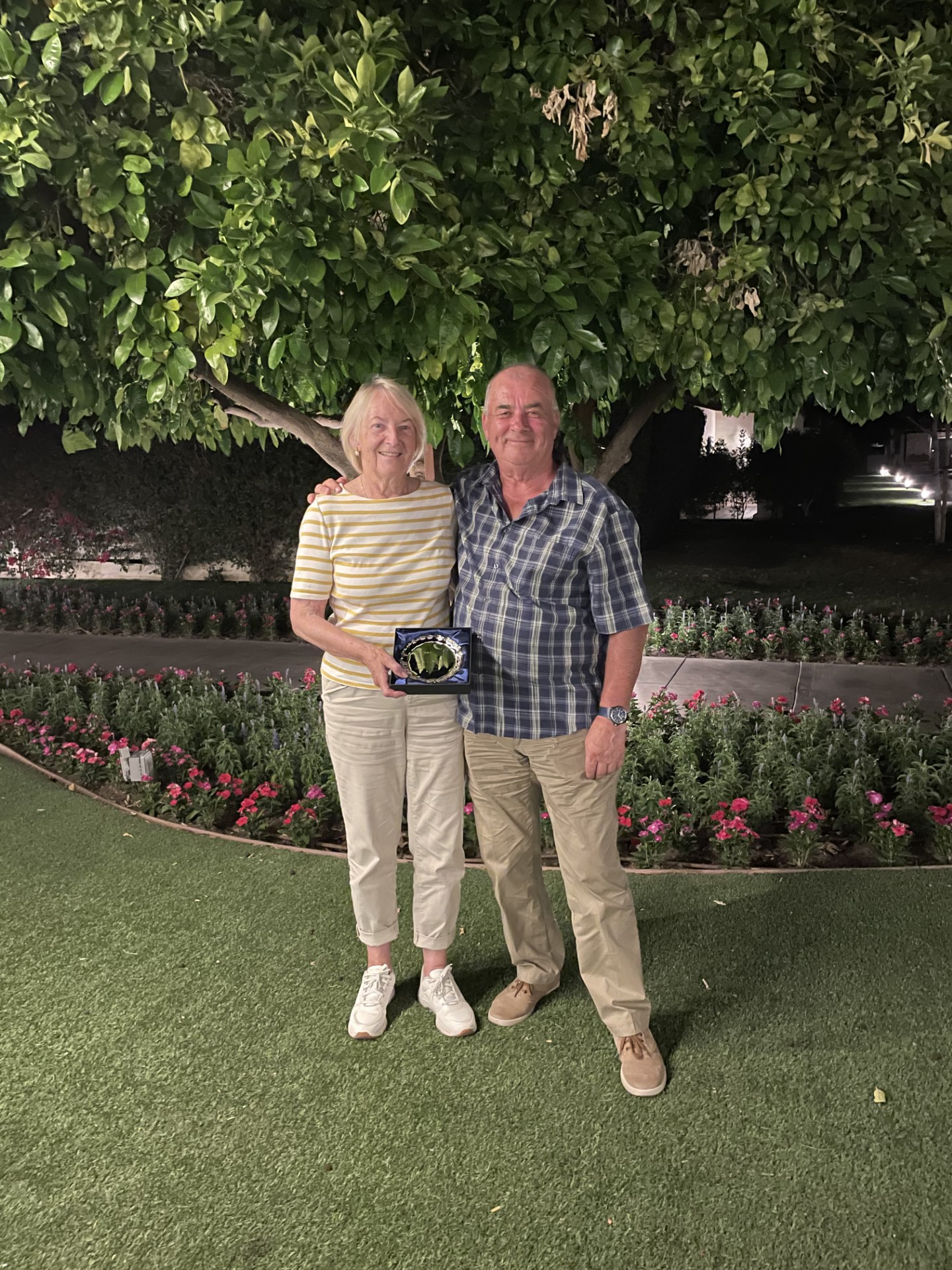 But how had our leaders faired? They had a wonderful day together. Battling hard, Terry & Gill had shot a solid 35pts to cement their runners-up spot. But the week belonged to Matt & Angie. Leading from the start, they had played another wonderful round to record 38pts. This duo have the amazing art of “ham & egging it”. It seems when one of them has a bad hole, the other is right there to save the day! They would take the title of “Palm Springs Mixed Pairs” champions by a healthy 10 shots.