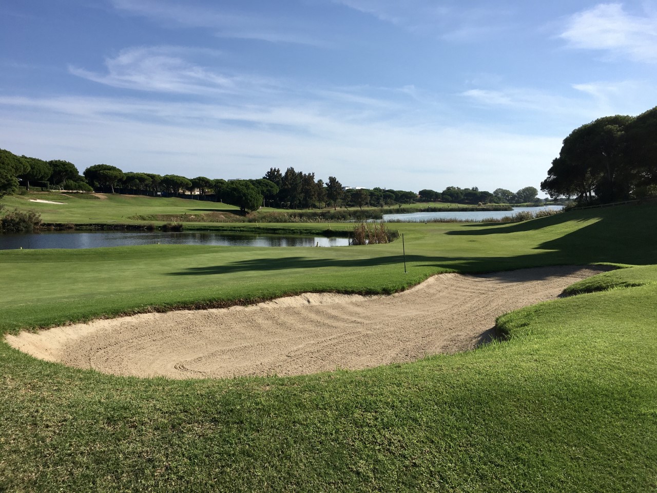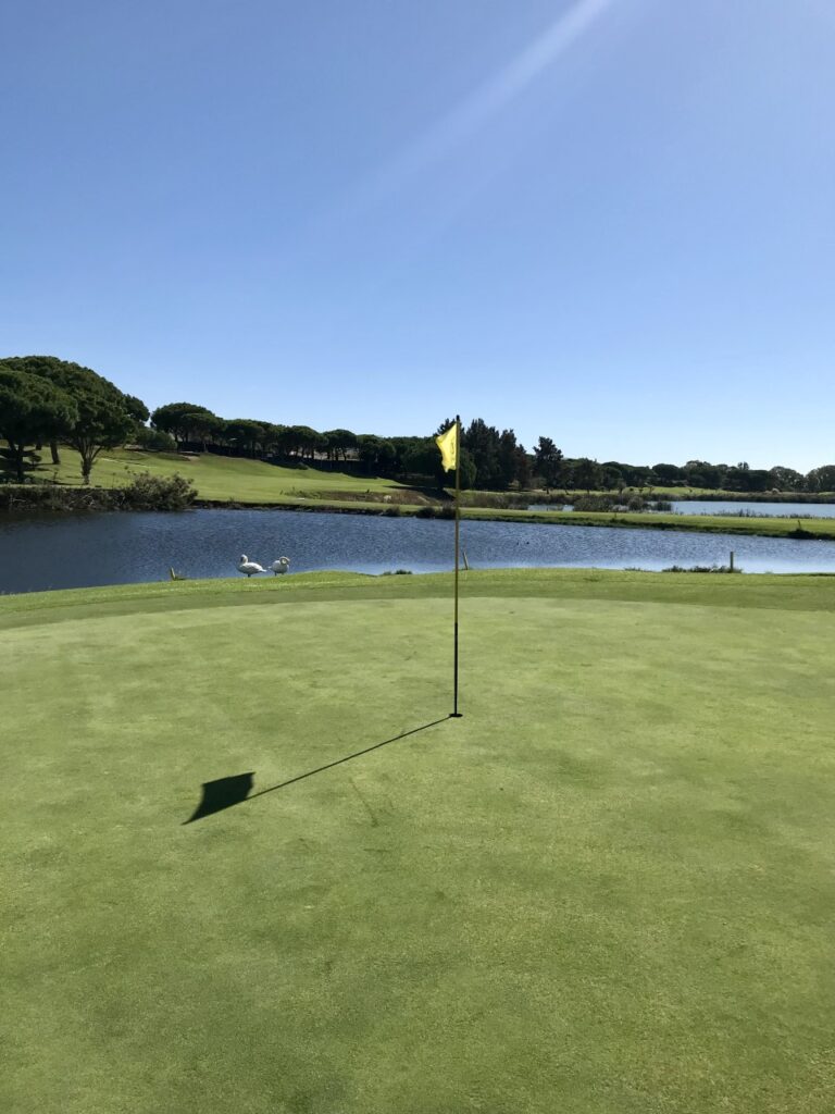 On the front nine of this stunning course you make your way along the Ria Formosa, then returns inland before a fearsome finish culminating with the infamous 18th hole where you have to negotiate the wet stuff for the entire length of the hole. Many a dream has ended here in a watery grave.