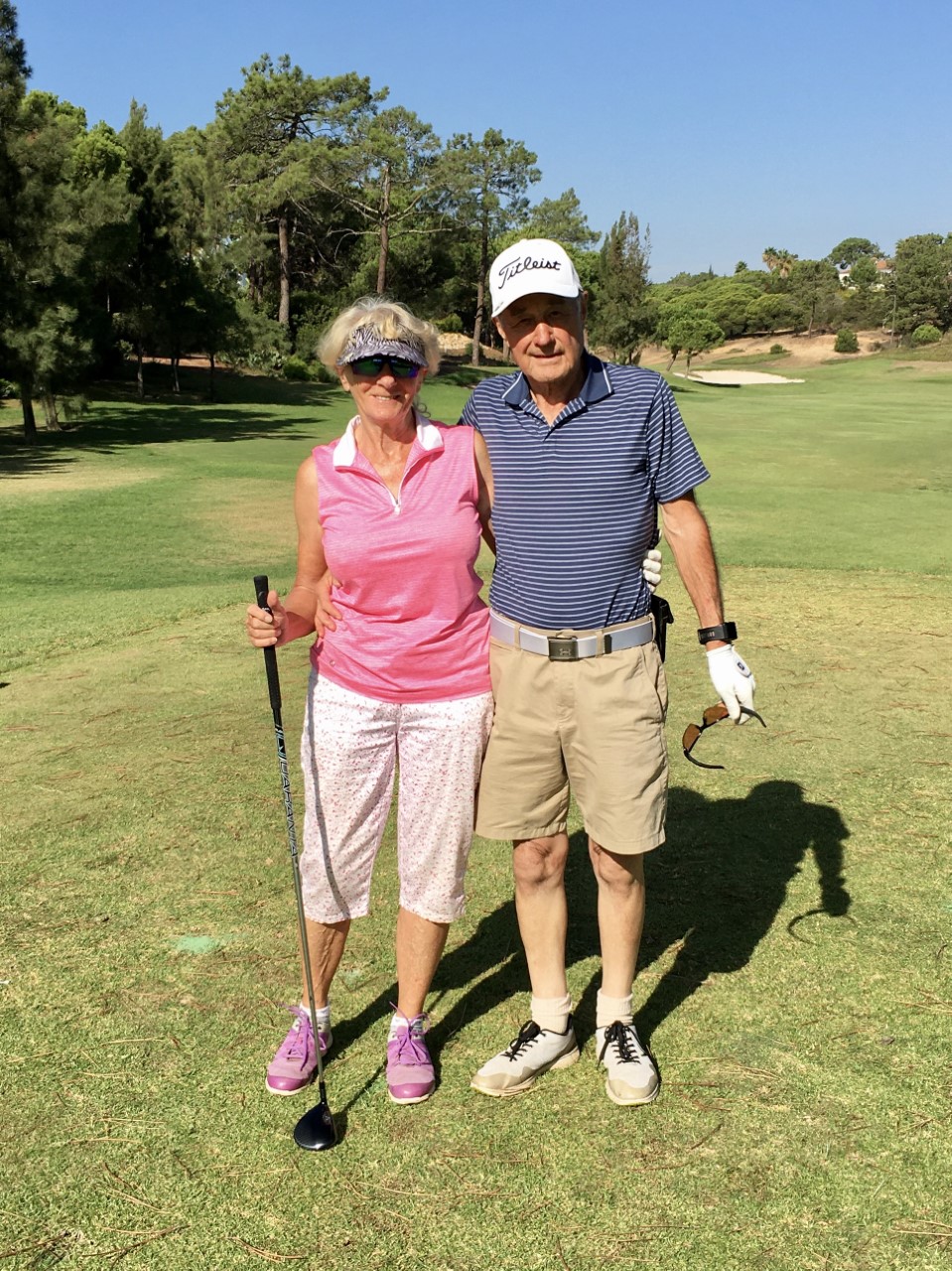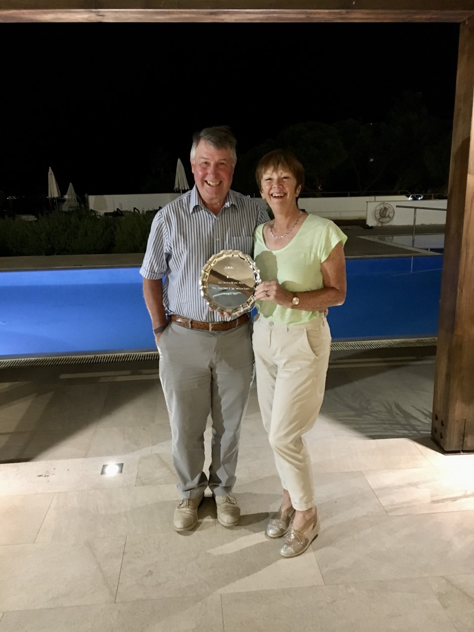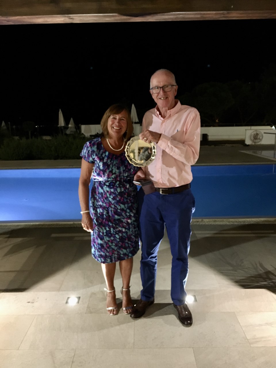 The temperature was still in the high seventies as our group returned for round three. Our lowest combined handicap duo of Peter Lockett & Teddy Bevan set off in fine style, with Peter birdieing the first three holes. This set up a great day for the Oxfordshire pair who returned to the clubhouse having signed for 40pts. Also, the Essex pair of Mick & Hazel Jameison produced their best score of the week after shooting a fabulous 41pts. However, the day belonged to the Hindhead team of Stuart & Val Robinson, back to form, pipping Mick & Hazel on countback and recording their second victory of the week.