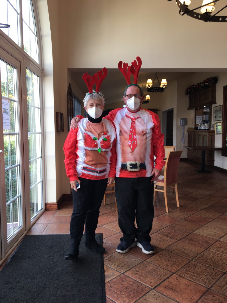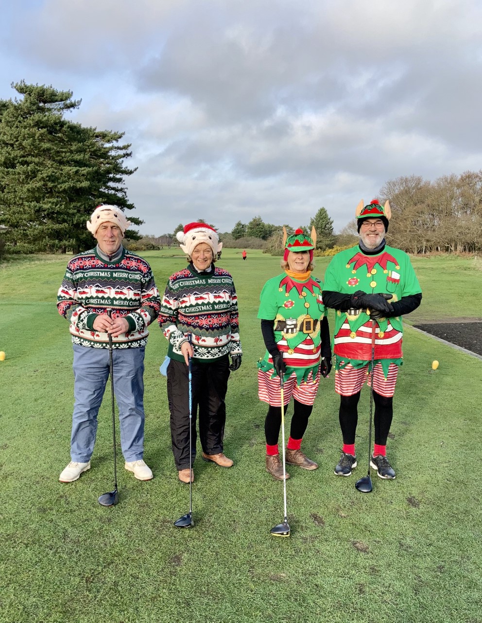 The first day was played in a mild temperature with just enough breeze to make the course a test. The format of the day was a team event with the best two scores from four to count. Christmas attire was also made compulsory!