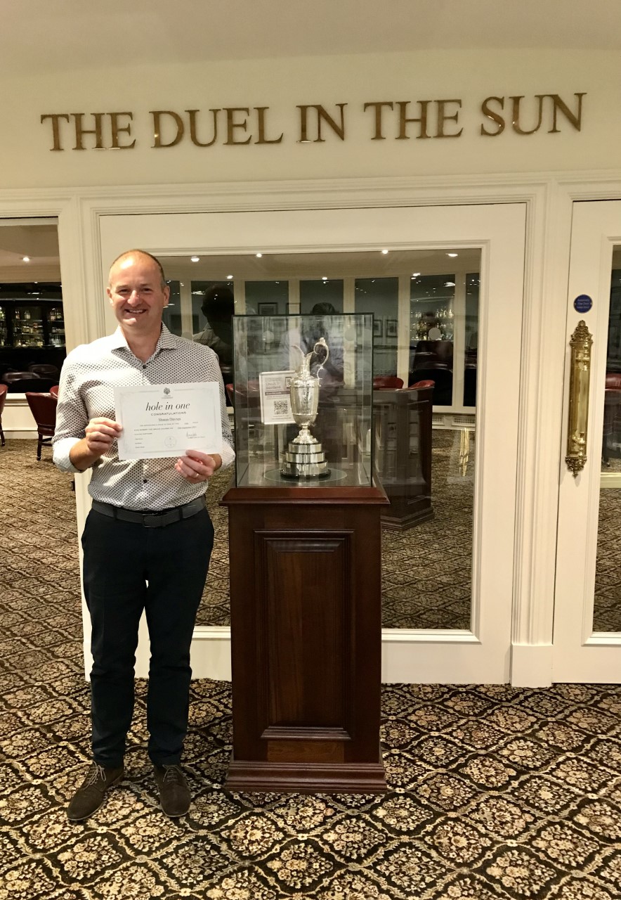 The early pace was set by Sid & Ta Cox from Centurion Golf Club with a brilliant 43 points. As Sid handed their card in he was buzzing with their play as he informed us it was his best game for as long as he could remember. It also turned out to be a memorable day for 3-handicapper Shaun Davies, his wife Clare and their playing partners Ian & Pauline Morris. Shaun stepped on to the tee of the par 3 10th on “RTB” and promptly went and holed his iron shot to produce a wonderful “hole in one.”